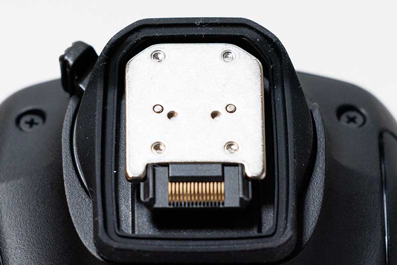 EOS R3から搭載されたマルチアクセサリーシュー。もちろん従来のストロボも対応しますが、完全対応するのはキヤノン純正のみ。今回は普段使い用としてTTL測光が楽に使えるストロボが欲しかったので、冒険せず純正に逝きました。